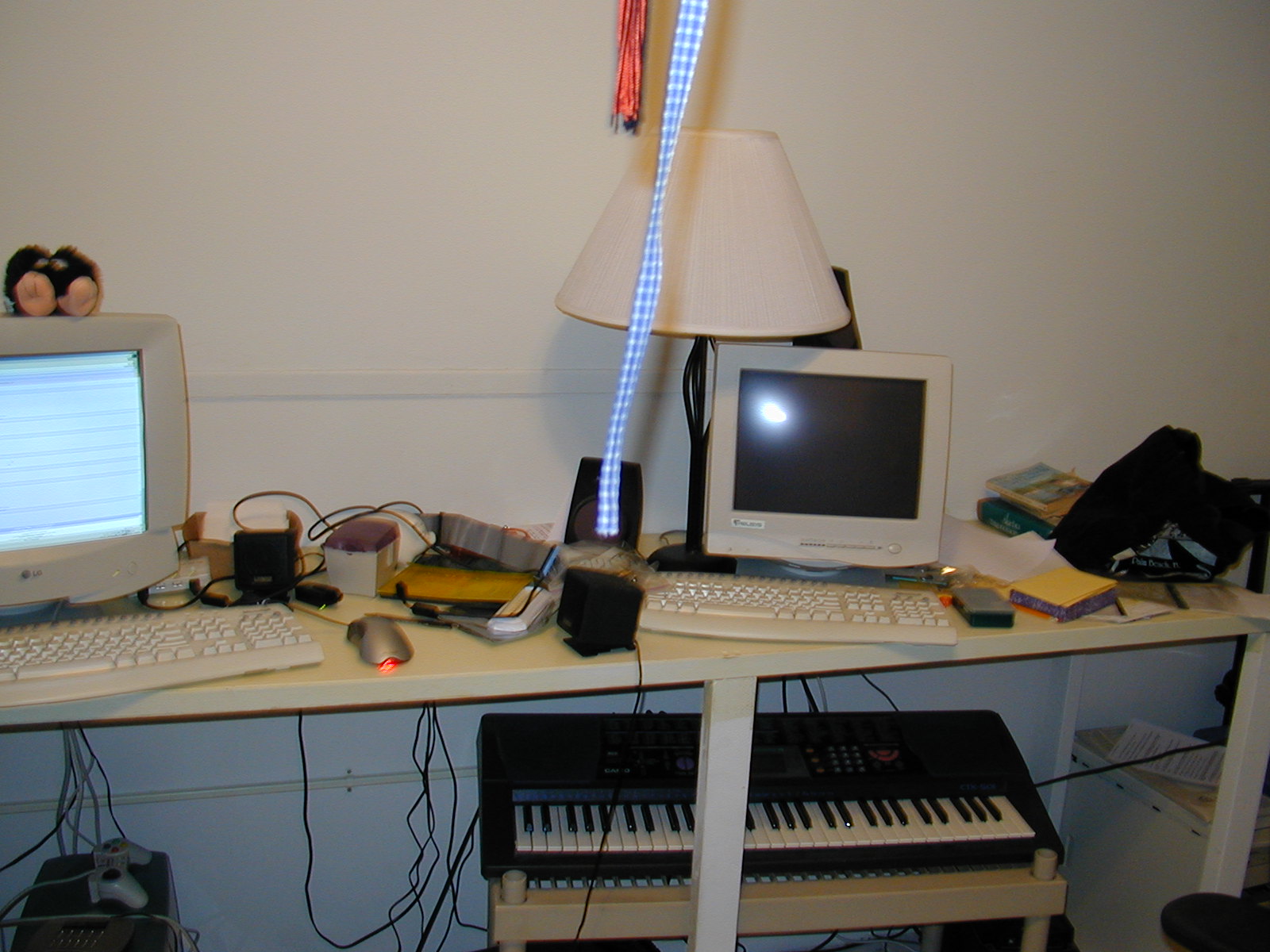 Finally we have my last PC, the P3-450. Monitor on top, USB keyboard beneath,